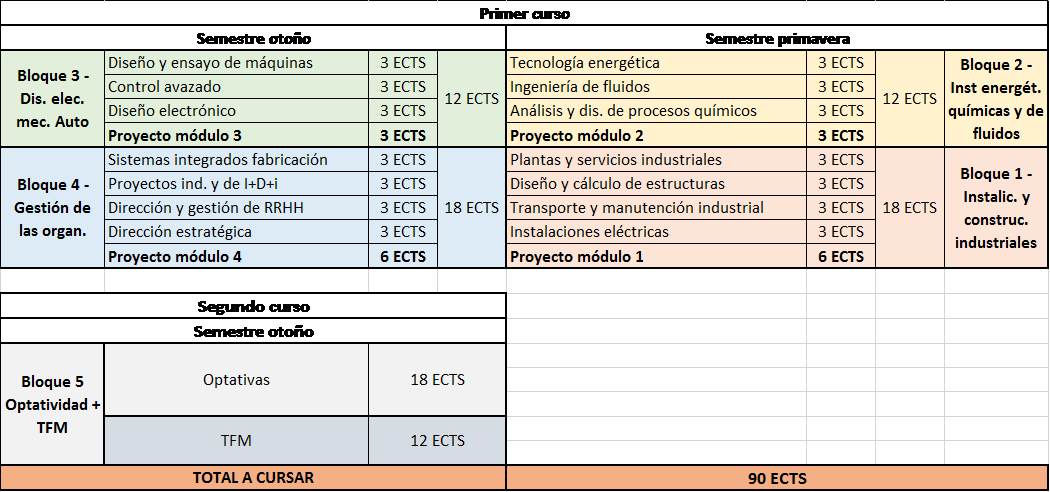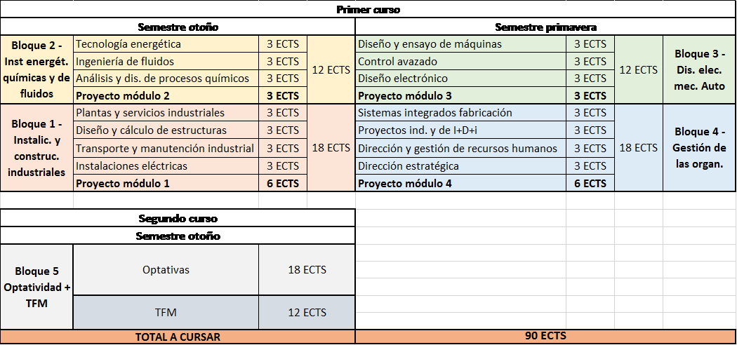 El Máster Universitario en Ingeniería Industrial es una titulación eminentemente multidisciplinar lo que facilita unas tasas de empleabilidad muy elevadas. Aporta unas amplias competencias que conceden una gran polivalencia profesional. El Máster habilita para ejercer la profesión de Ingeniero Industrial que goza de atribuciones profesionales establecidas por ley, cuenta con amplia tradición y reconocimiento y responden al entramado socio-industrial del país. La formación adquirida aporta al ingeniero capacidad de resolución, innovación y adaptación a los retos que se le planteen en su ejercicio profesional ya sea en ámbitos de las empresas industriales y de servicios, centros de investigación o administraciones públicas. Desde el curso 25-26 se pone en marcha el nuevo plan de estudios del Máster de Ingeniería Industrial con una duración de 90 ECTS y en un enfoque más aplicado y cercano a la industria. La actual modificación del máster para adaptarse al RD 822/2021 no solo busca mantener una estructura de estudios que ha demostrado ser eficaz en términos de inserción laboral de los egresados y en la aplicación de metodologías docentes más prácticas y participativas, sino también introducir modificaciones relevantes que permitan adecuar el programa a los cambios progresivos que vienen detectándose en el sector industrial en los últimos años. | ![]() |