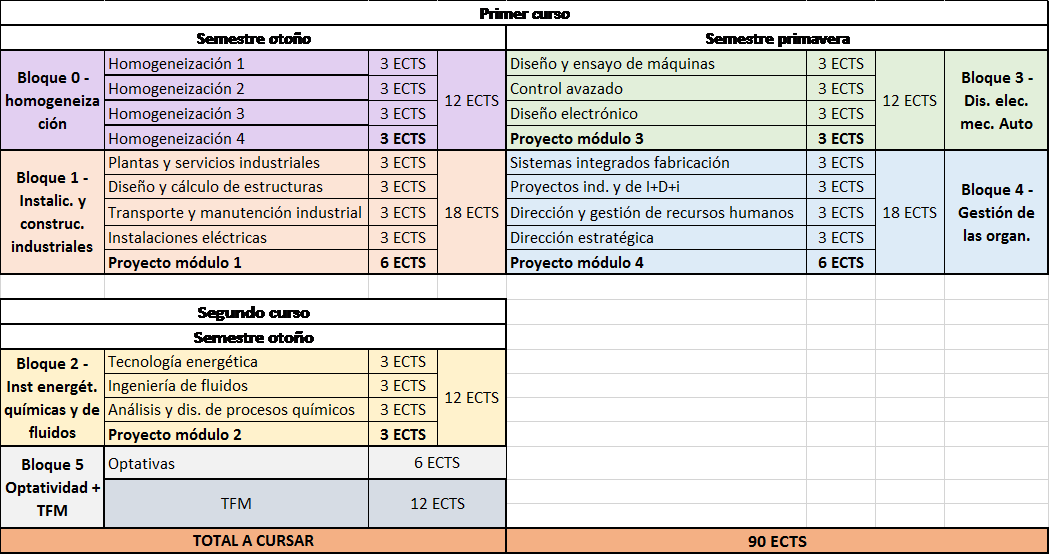 El plan de estudios tiene 90 créditos ECTS, equivalente a 3 semestres.