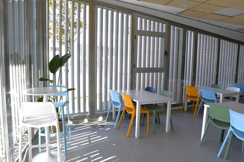 - Equipamiento: La sala cuenta con mobiliario adaptado y una zona office equipada con microondas y fregadero para facilitar las comidas en el campus.