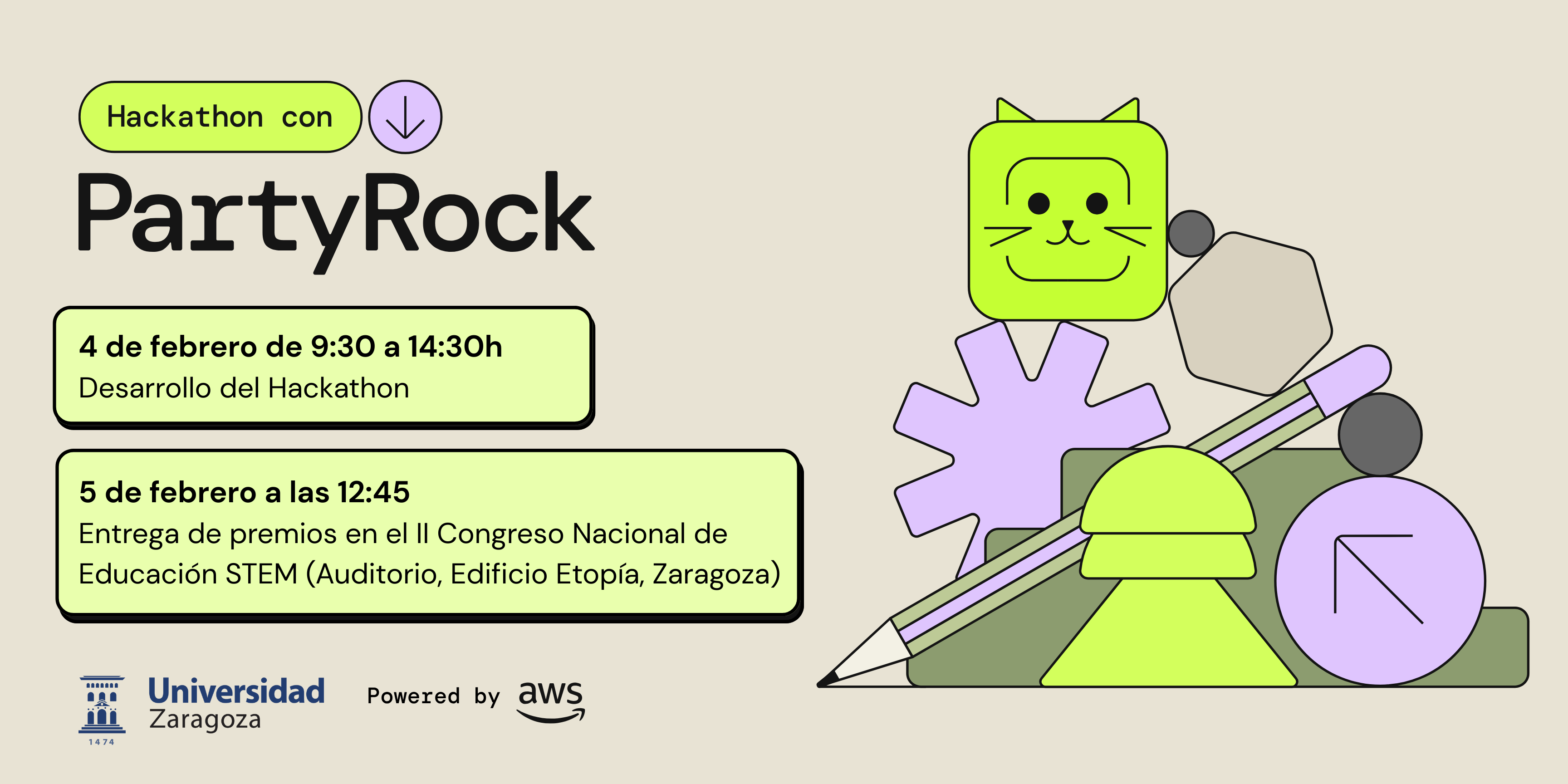 La idea es muy sencilla: formar 👥 equipos de 4 personas (si no tienes equipo, apúntate y lo creará la organización), trabajar sobre 🧠 retos muy interesantes y construir ️ pequeños prototipos de herramientas de IA utilizando PartyRock de AWS ☁️, una herramienta que te permitirá construir